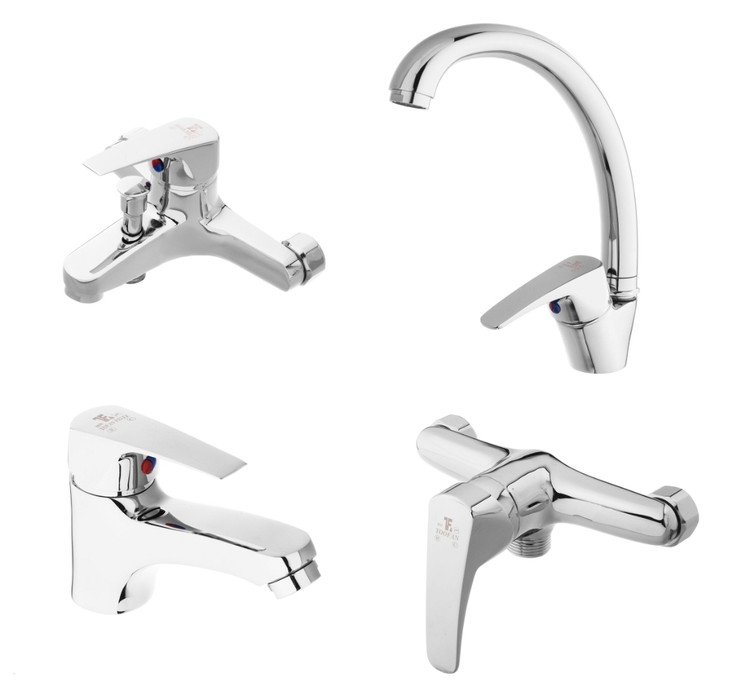 ست کامل شیرآلات اهرمی که شامل شیر ظرفشویی، روشویی، دوش حمام وتوالت (۴ تیکه ) می باشد.