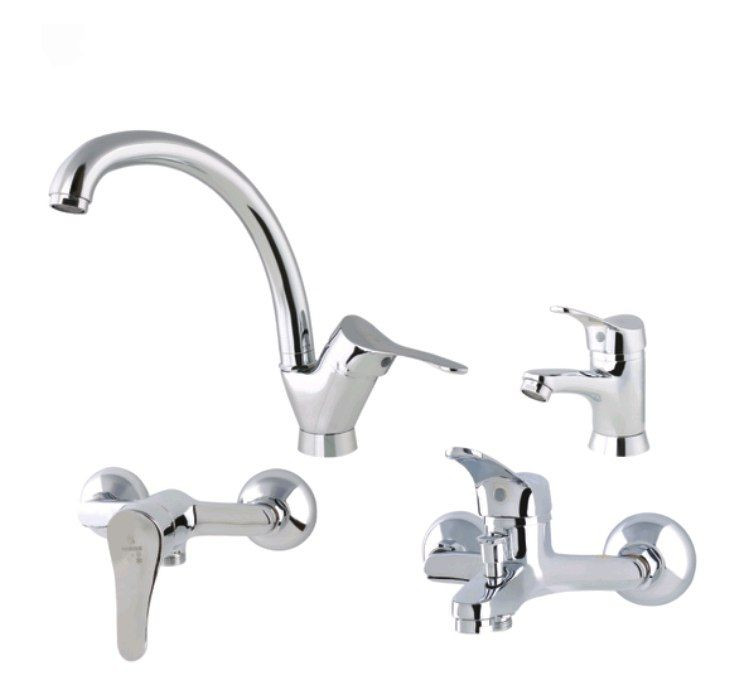 ست کامل شیرآلات اهرمی که شامل شیر ظرفشویی، روشویی، دوش حمام وتوالت (۴ تیکه ) می باشد.